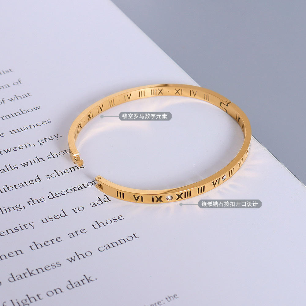 This elegant Roman Charm Bangle features a sleek gold-tone finish with engraved Roman numerals that give it a timeless and sophisticated look. Small crystal accents are set at intervals, adding a subtle sparkle that catches the light beautifully. The slim, lightweight design makes it comfortable to wear all day while still looking refined and stylish.